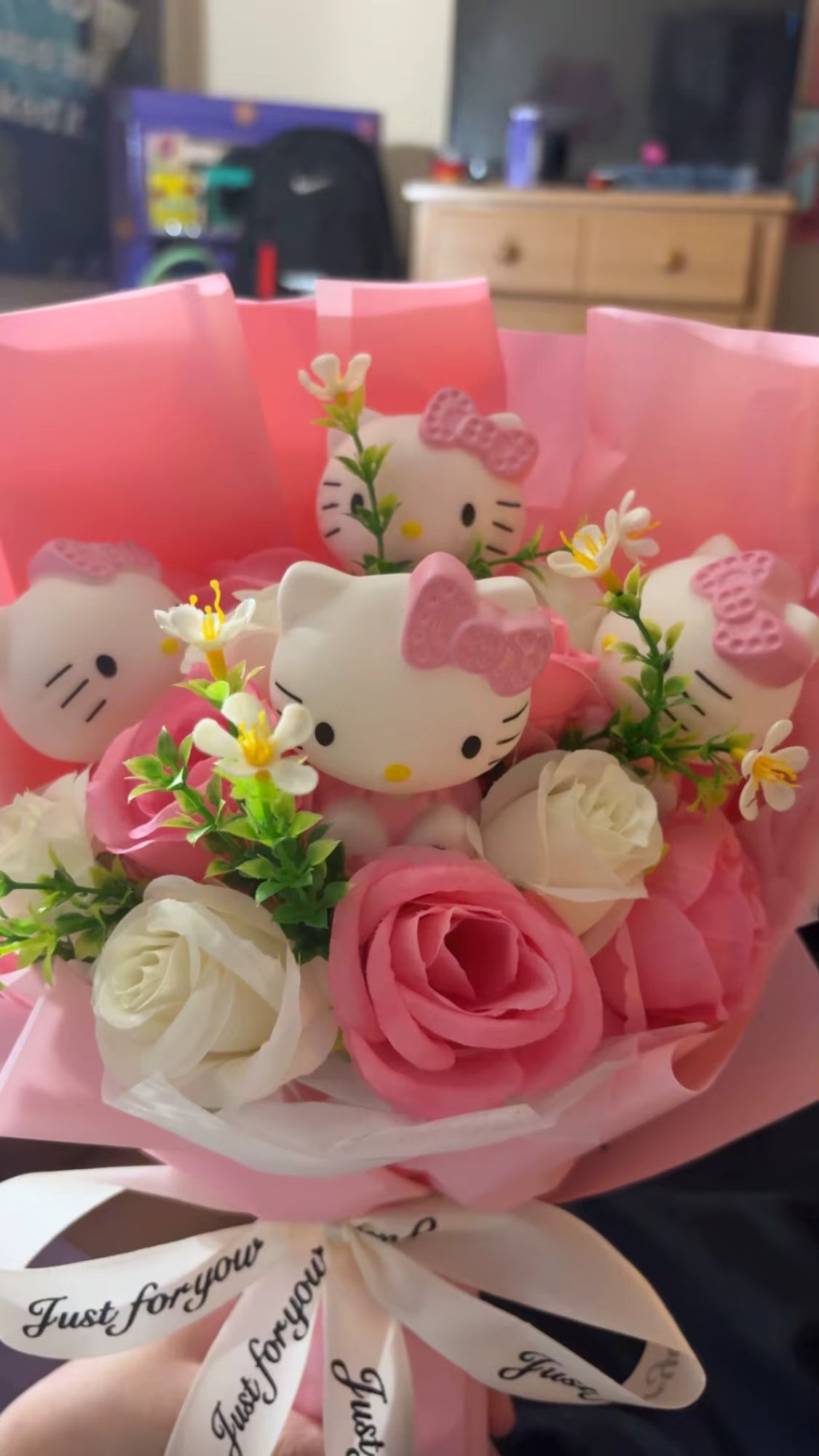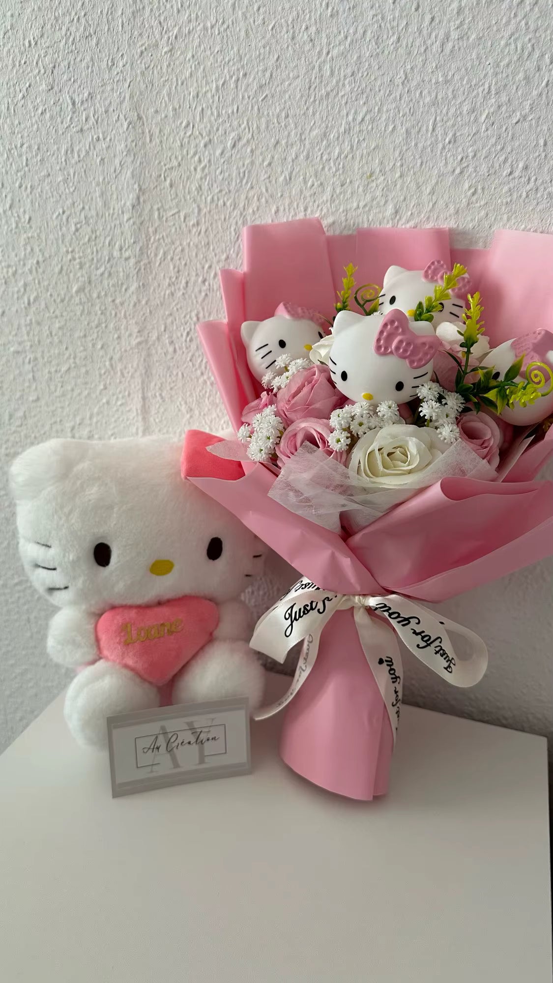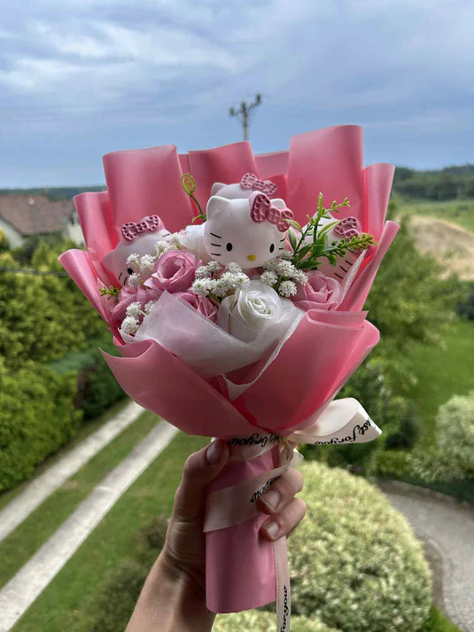 Zaskocz bliską osobę bukietem, który nigdy nie zwiędnie. Pluszowe Hello Kitty i kwiaty w różnych kolorach tworzą prezent pełen radości, miłości i uroku.